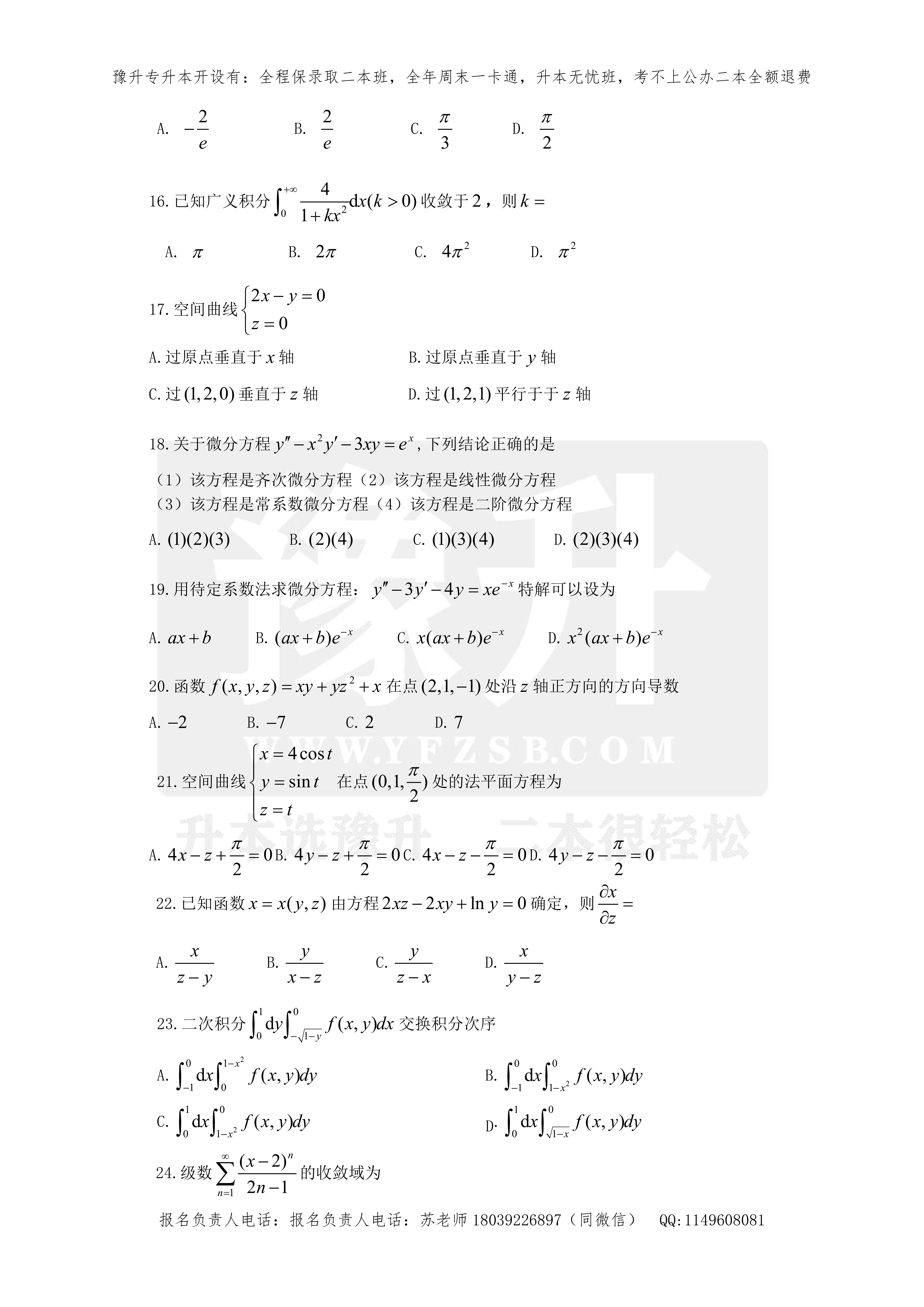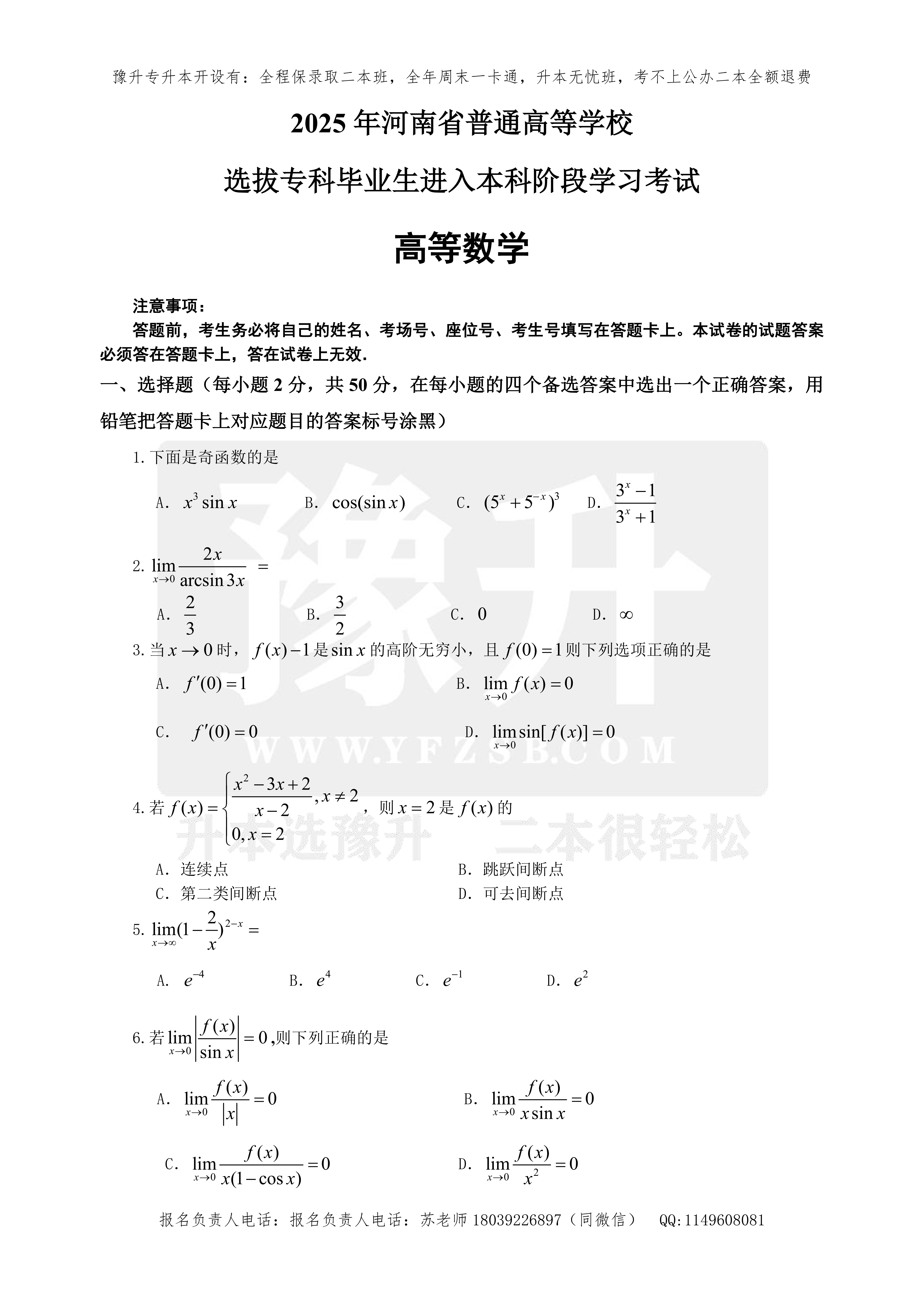 河南专升本考试题型- 高数