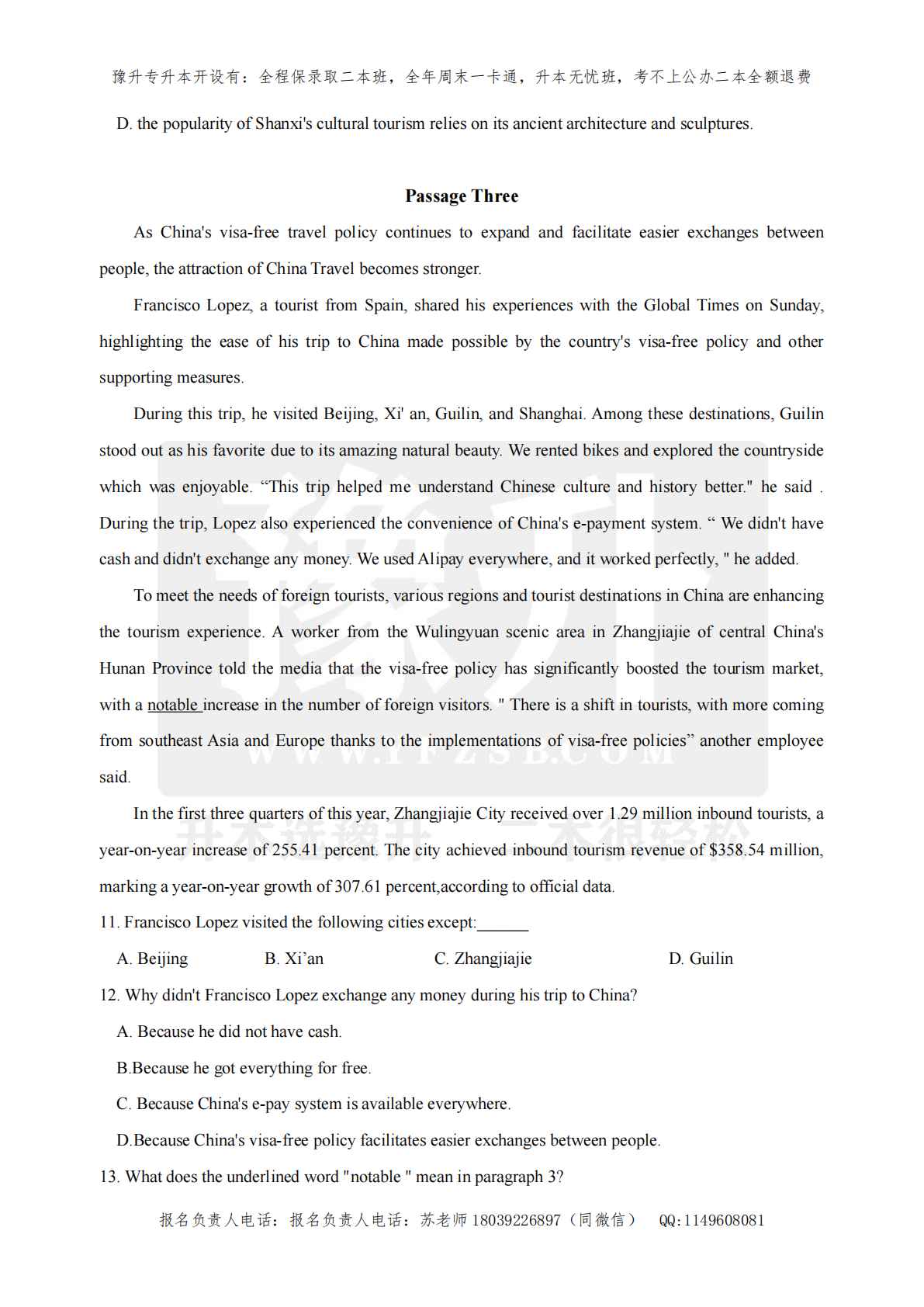 河南专升本考试题型- 英语