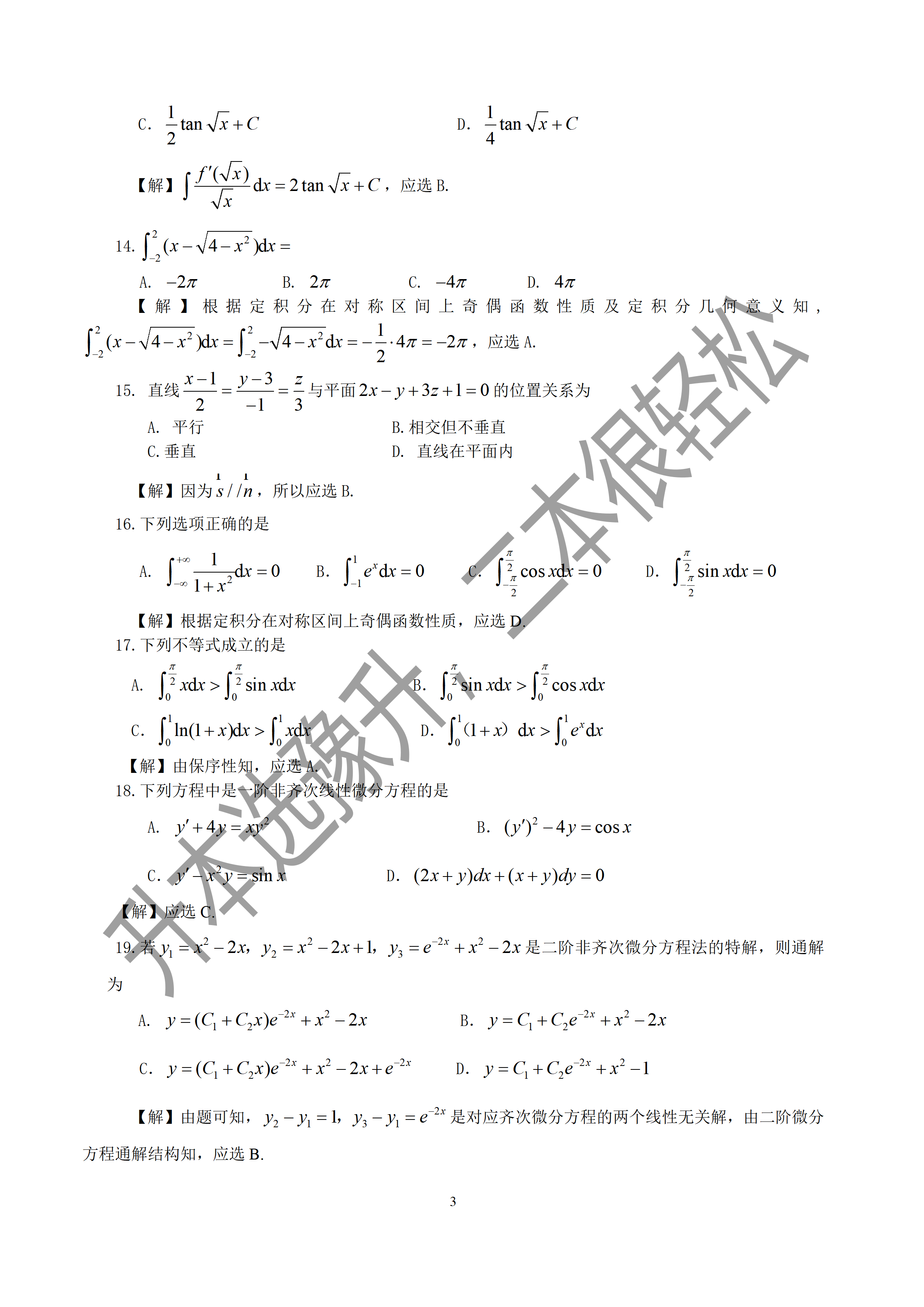2018年河南专升本高等数学真题试卷答案详解