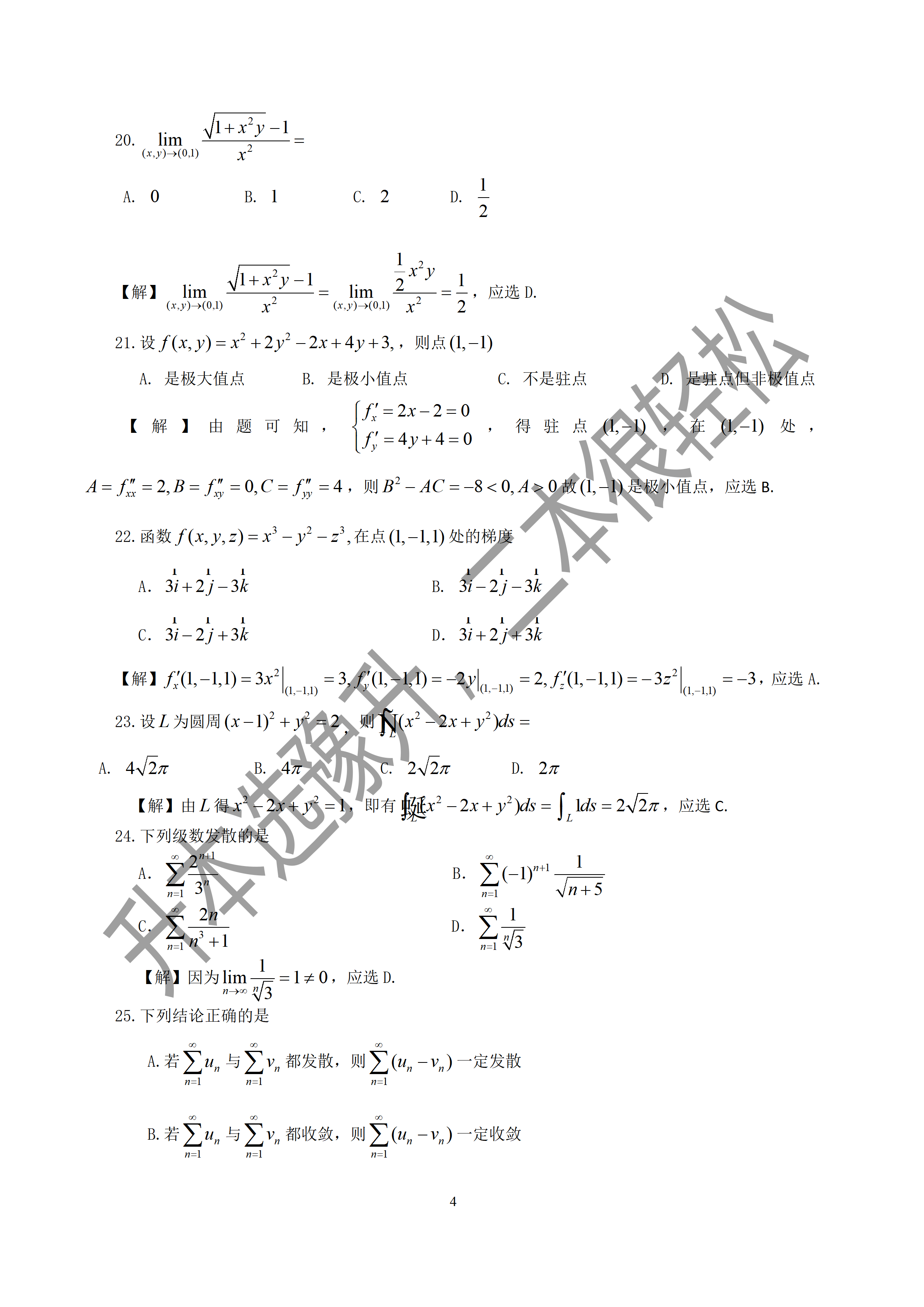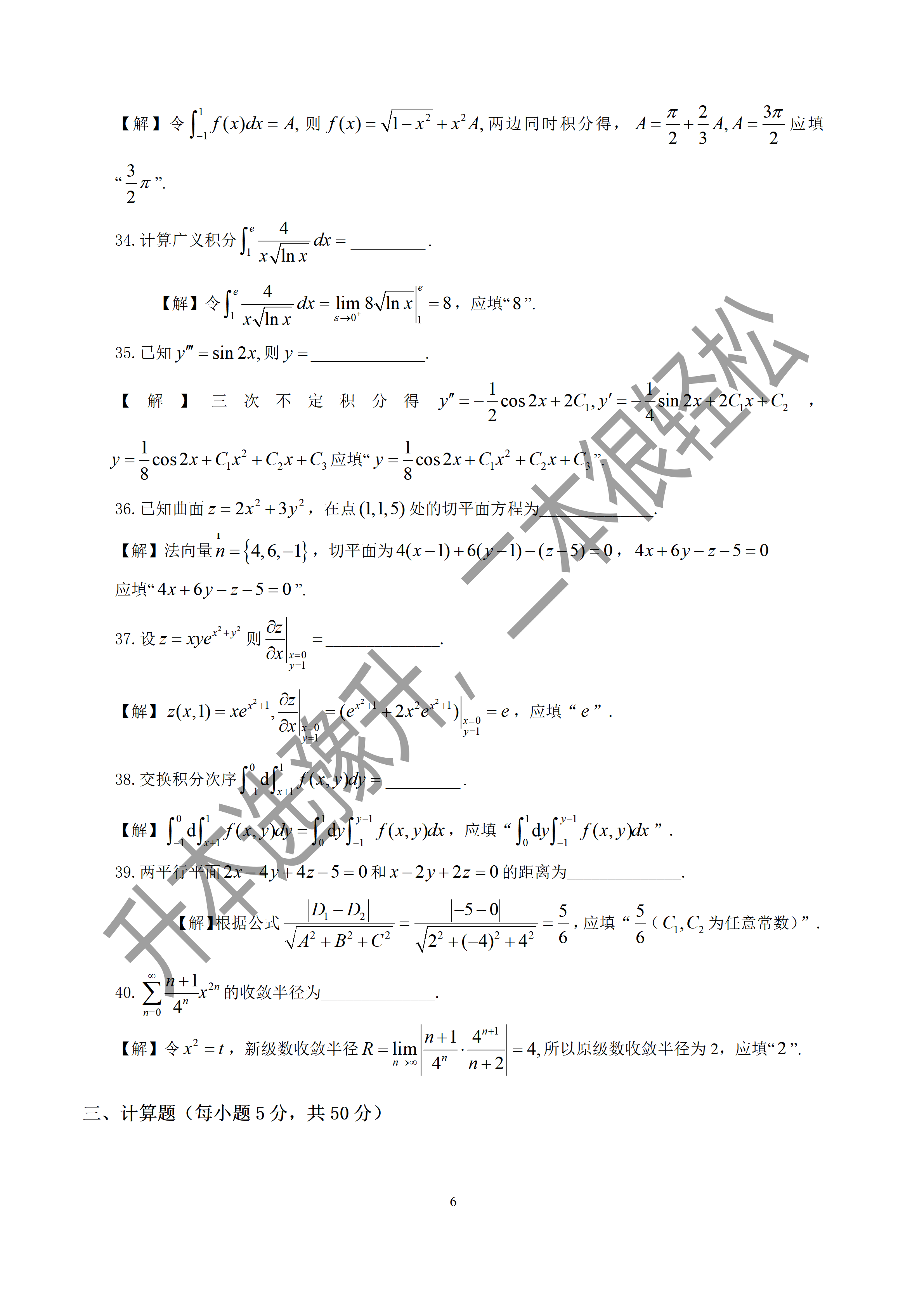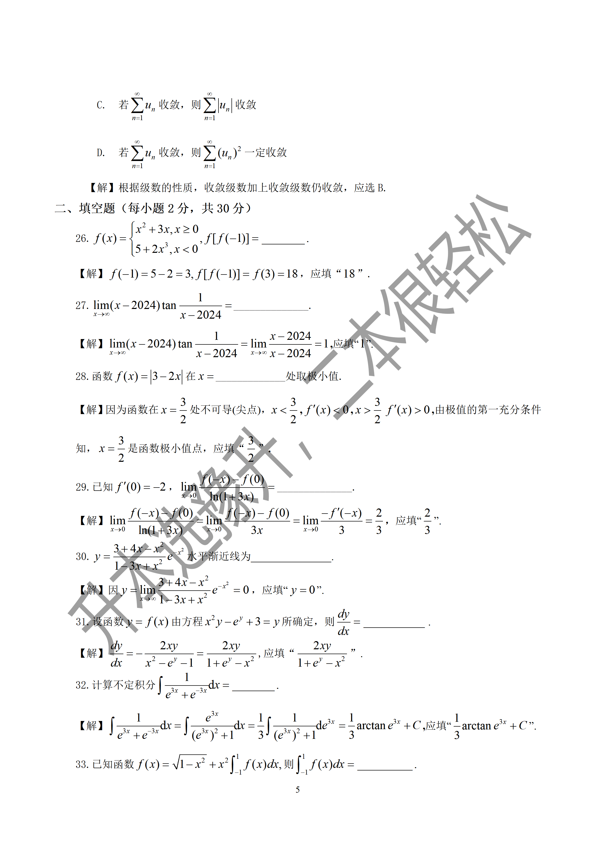 河南专升本2024年真题及解析-高数