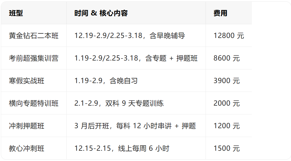 🔥 12 月专属福利:200 元抵 1500 元!现在缴 200 元定金,直接抵扣「考前超强集训营」学费 1500 元(原价 8600 元,相当于打了近 8 折),优惠仅限 12 月!