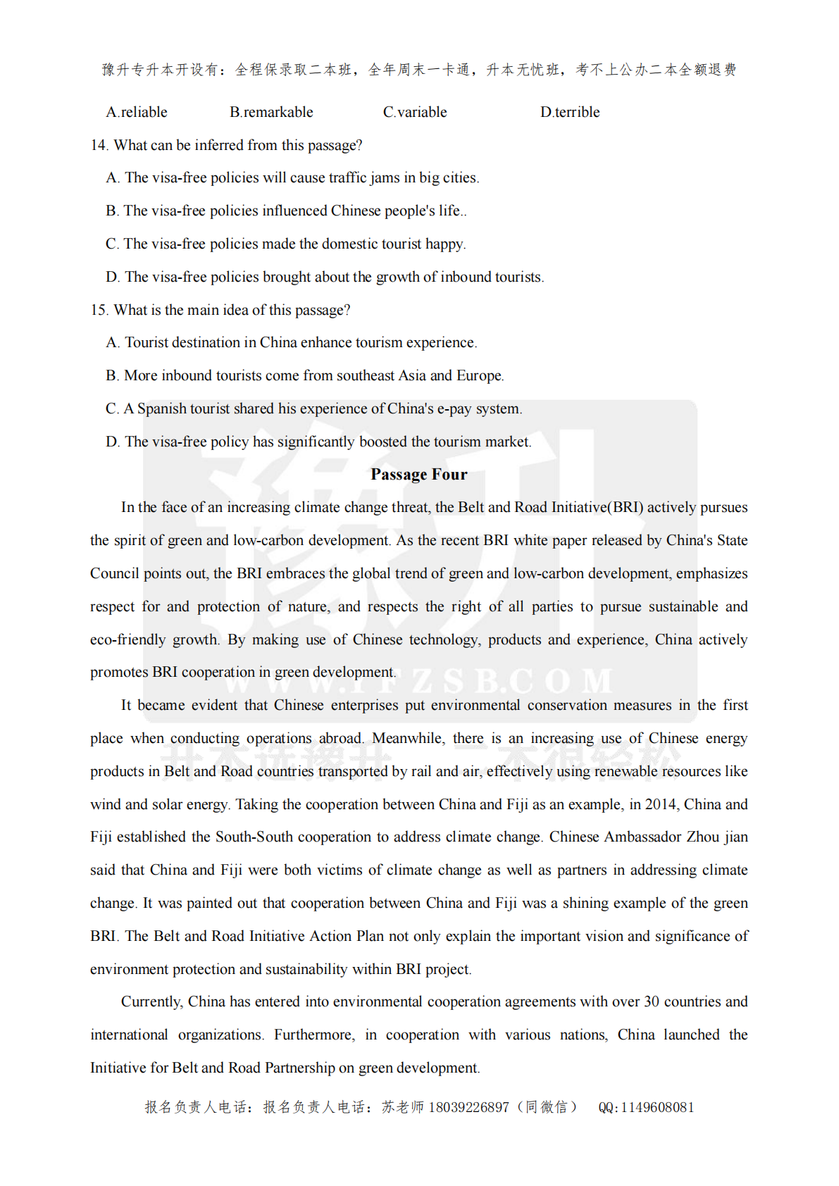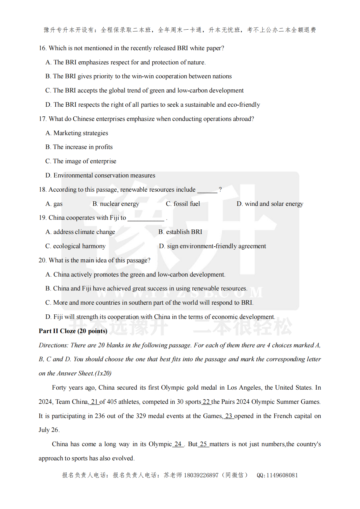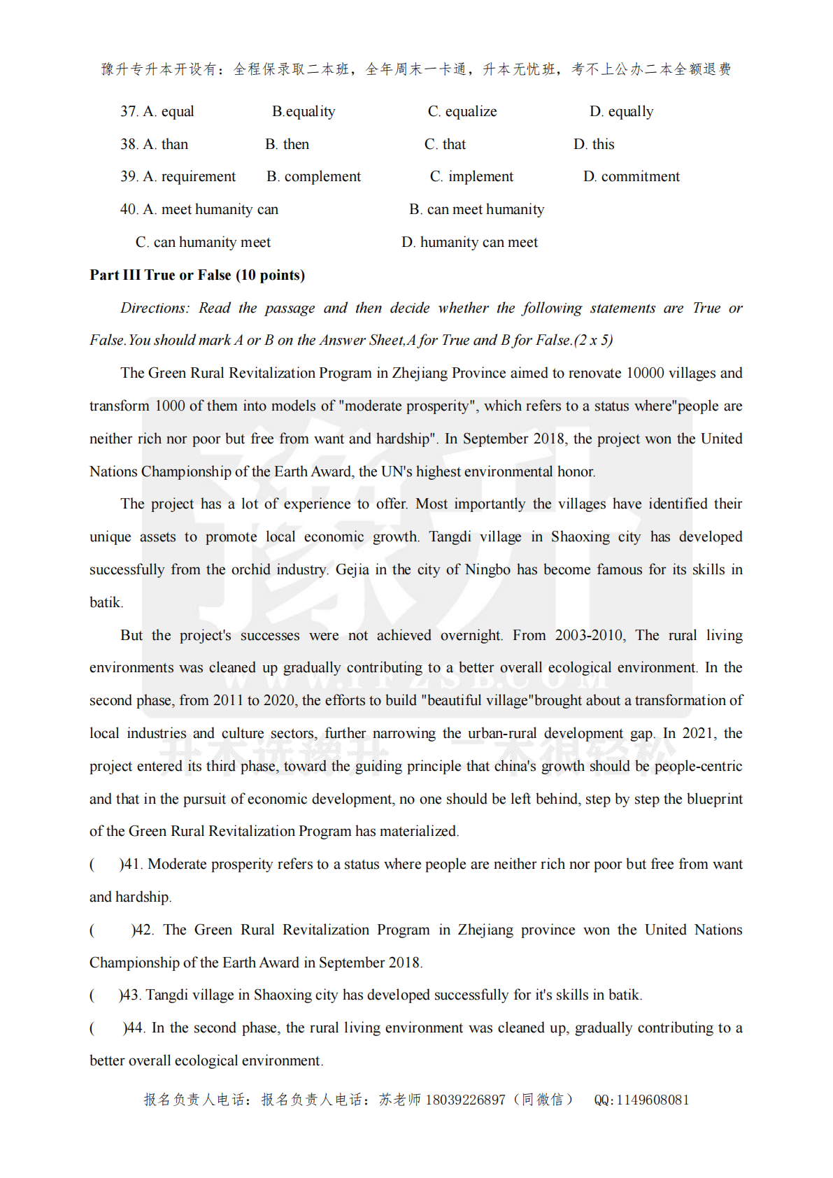 河南专升本考试题型- 英语