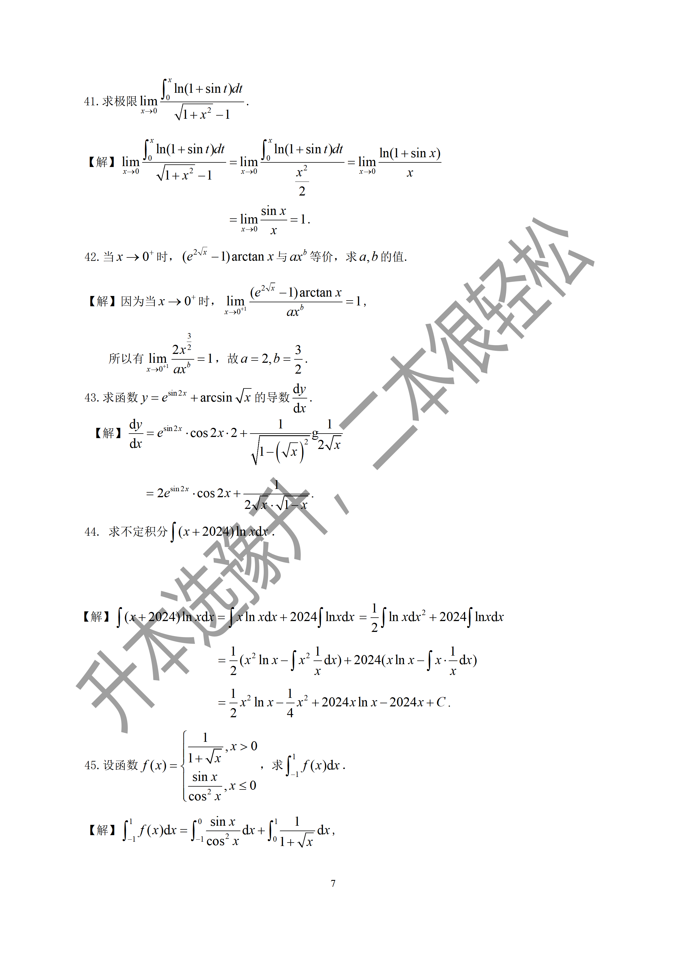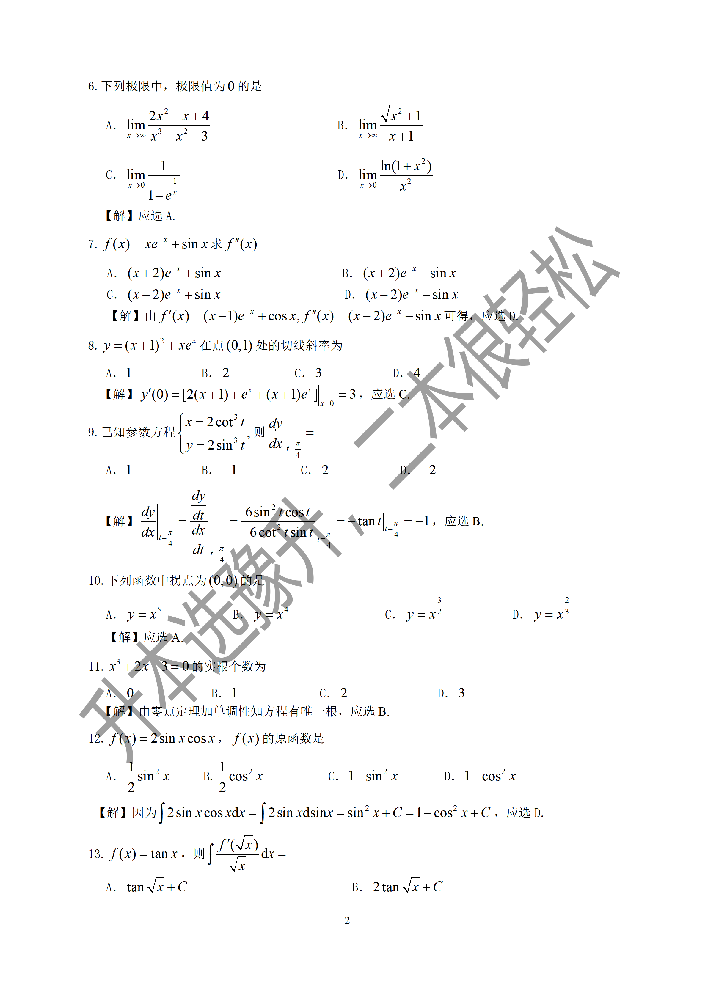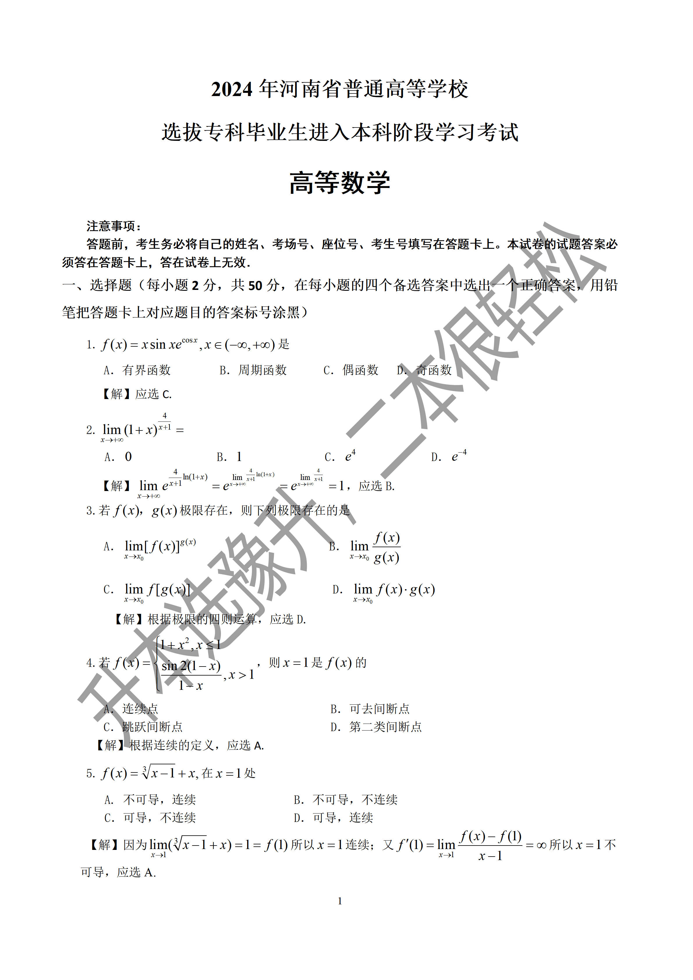 河南专升本2024年真题及解析-高数